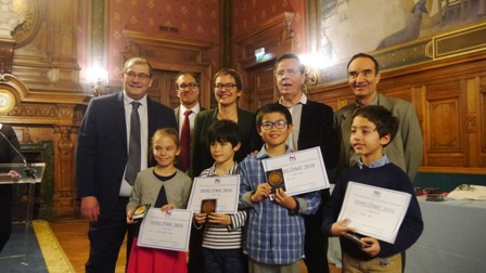 Adam, Clara, Pierre-Louis et Tony ont reçu leur médaille dans la magnifique salle de mariage de la mairie.