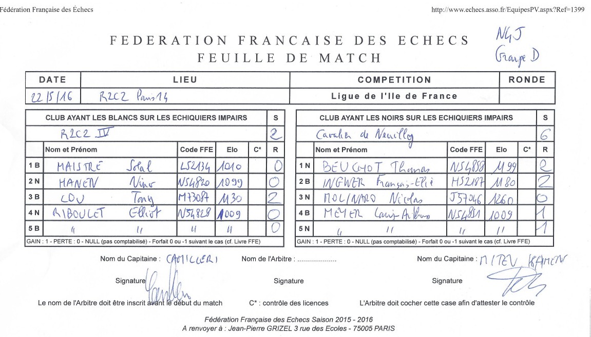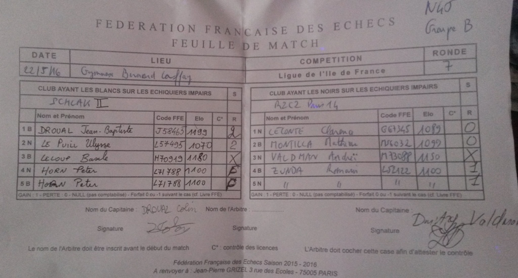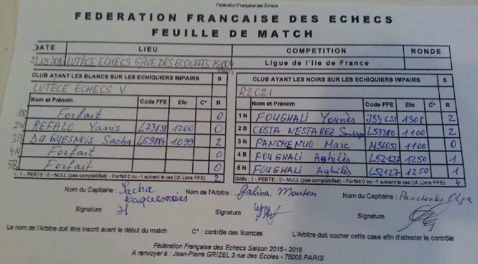 Voici les feuilles de match.