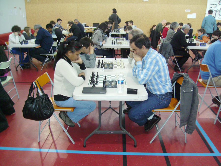 L’épreuve a tenu toutes ses promesses et même au-delà. La grande salle du gymnase Rosa Parks, théâtre habituel de nos rencontres était pleine comme un 9, pardon un œuf. Les places laissées vacantes par quelques absents (qui eurent bien tort) furent occupées par les derniers inscrits. Nous fûmes donc 80 (limite imposée par la sécurité) à disputer les fatidiques 7 rondes de 20 minutes.